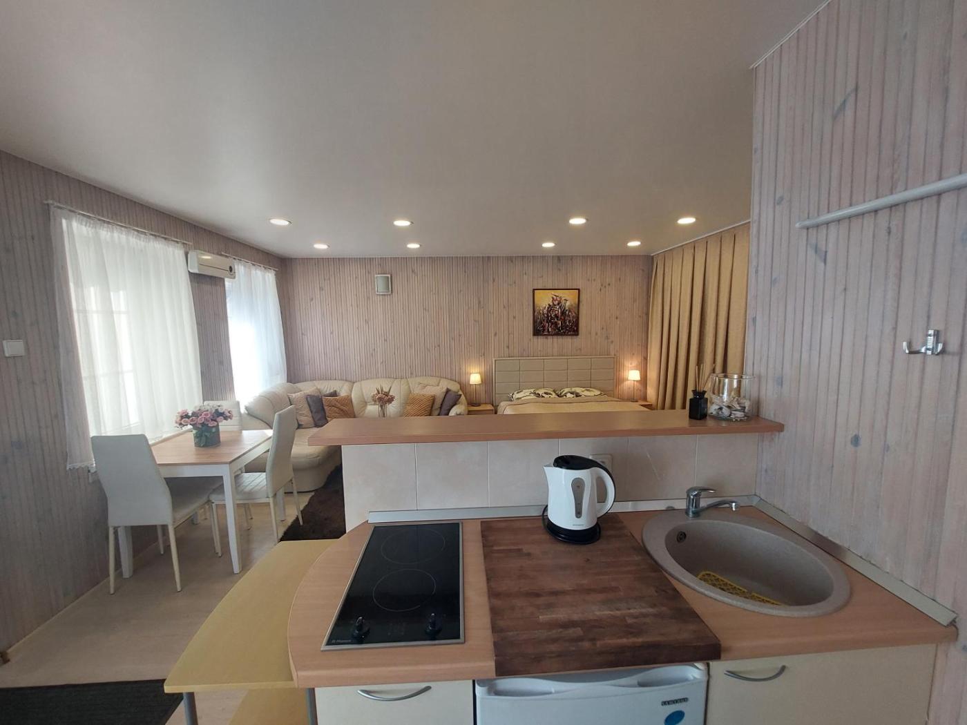 Studio Apartment. The well-fitted kitchenette features a stovetop, a refrigerator, kitchenware and a tea and coffee maker. The family room offers a private entrance, soundproof walls, a terrace with garden views as well as a private bathroom featuring a walk-in shower. The unit offers 2 beds. ;