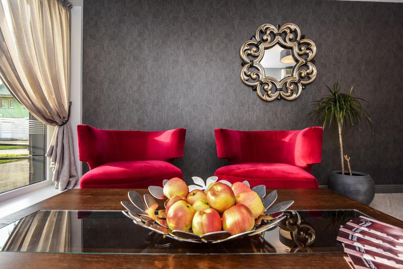 Muza Hotel’s restaurant serves Lithuanian and international cuisine. The bar serves a variety of drinks and snacks.