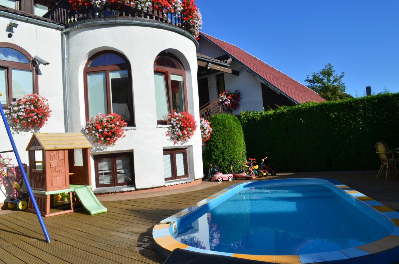 All 10 apartments feature TV, internet access and a small kitchen. The hotel offers a sauna, a swimming pool, an underwater massage bath for an additional fee. It also features a parking lot, a safety deposit box, a playground and a terraceguests can barbecue on their own. Tennis courts are within a short distance.